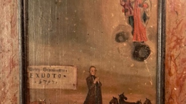 Klosterarbeit mit einem besonders prächtigen bemaltem Rahmen